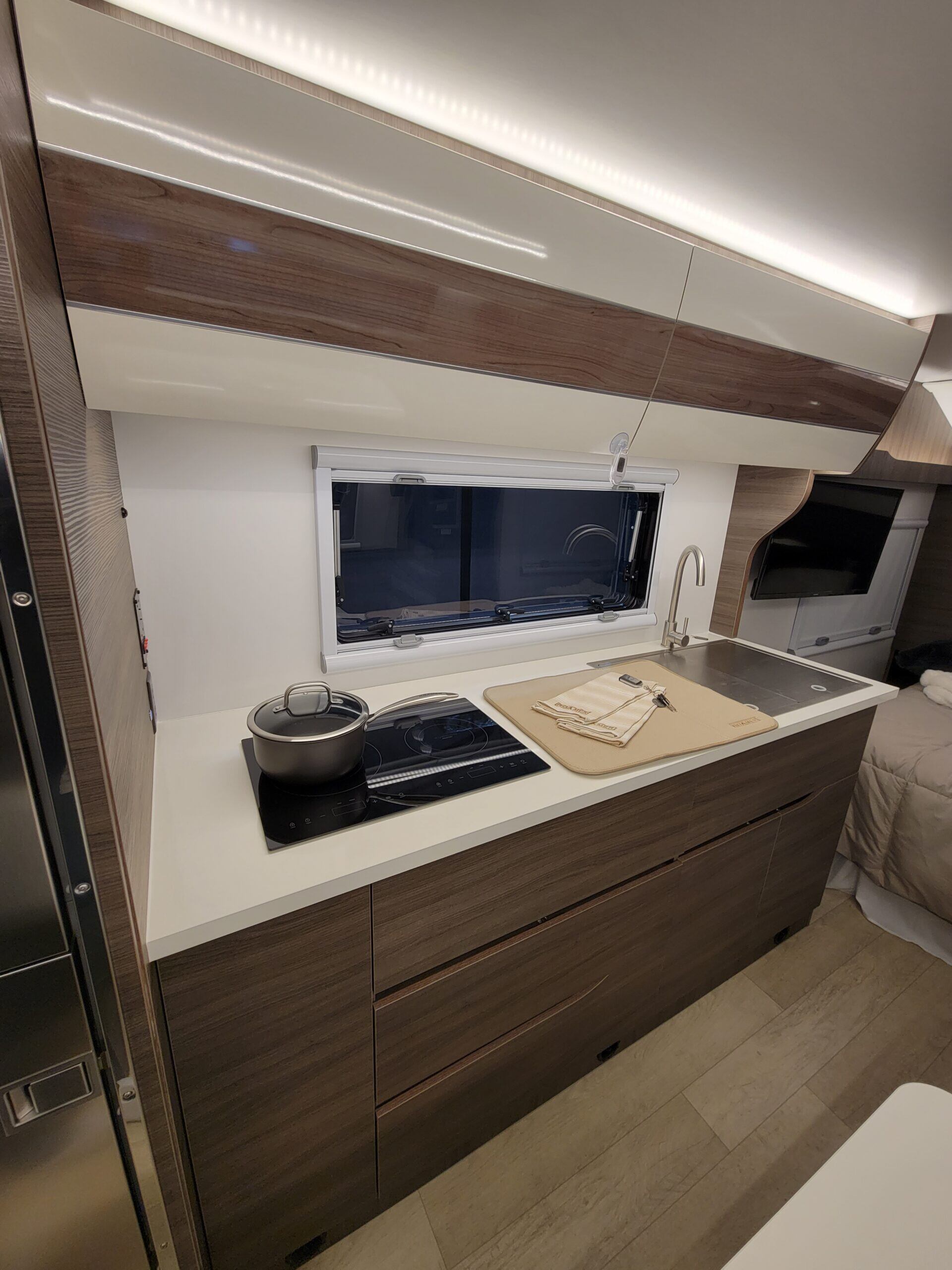 Regarding the sink, I just have to say wow. If you have ever owned an RV then you know that the sinks are often pitiful, not even big enough to put a full sized pan inside. This sink puts those others to shame. In fact, the ROAMER 1 sink is bigger than some sinks in an actual house! You won’t have any problems washing dishes or prepping food with this massive sink.