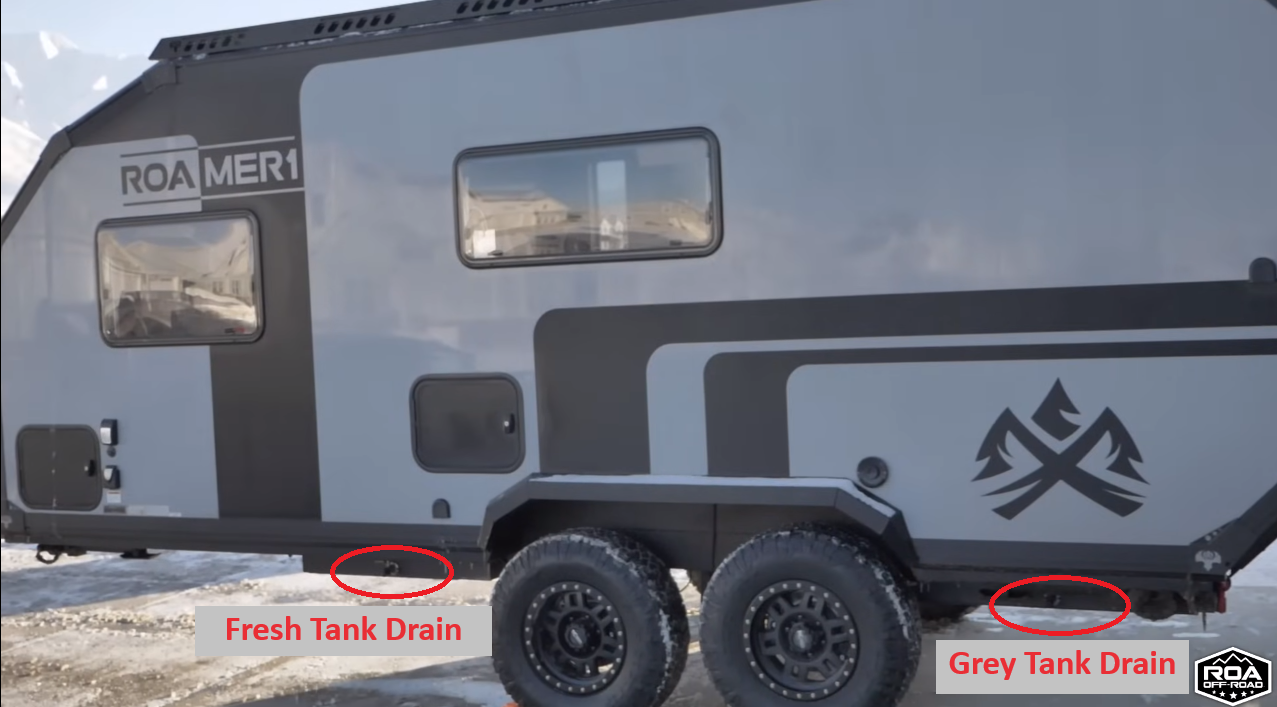 Water left in your fresh and grey tanks will start to smell or potentially grow harmful algea or bacteria. For this reason, anytime you are storing your Xplore trailer for any longer than a month (or a few weeks if you want to be safe), we would recommend that you empty the tanks out to prevent this from happening. Will it grow bacteria/algae if left for a little more than a few weeks? Maybe not, but lets stay on the safe side. To empty it, locate the yellow lever located underneath the trailer on the driver side frontwards of the axle. Pointing the yellow lever outwards will allow your freshwater tank to drain.