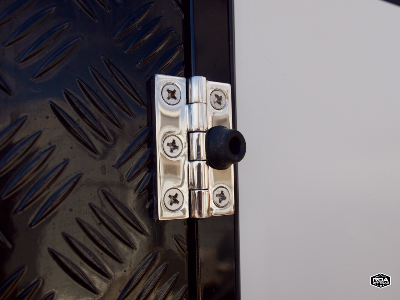 They have a fantastic attention to detail. When you see a bolt, there are washers with the bolts. That may seem silly, but you may be surprised how many campers leave out little details like that. You will also notice that all the screws and bolts are straight. You don’t have some coming in at off angles. When you look at the compartment doors, you will notice little rubber stoppers to keep the doors from getting all scratched. Now take a look at the quaking and seals. They are all but perfect. Next take a look at the door. Unlike many imports from Australia, the door opens towards the front of the trailer. Why is that important? Imagine it comes open while you are driving. Because it opens to the right, the wind will just close it. Their attention to detail is is in a close of its own.